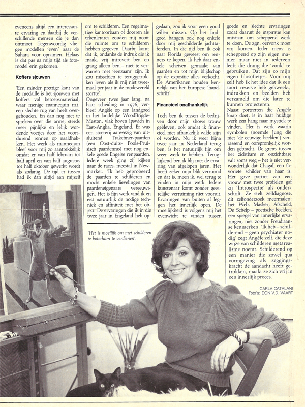 Daarnaast illustreerde zij diverse boeken . Haar huidige vrije werken hebben een intuïtieve start waarna het ontdekken van de figuratie in combinatie met zuiver denken en zoekend onder het oppervlak der dingen, duiden en werken naar het eindresultaat.